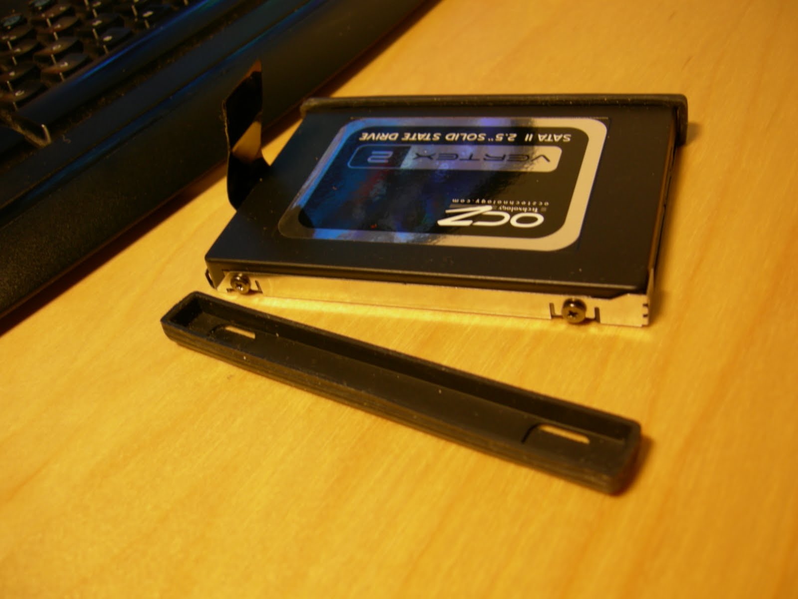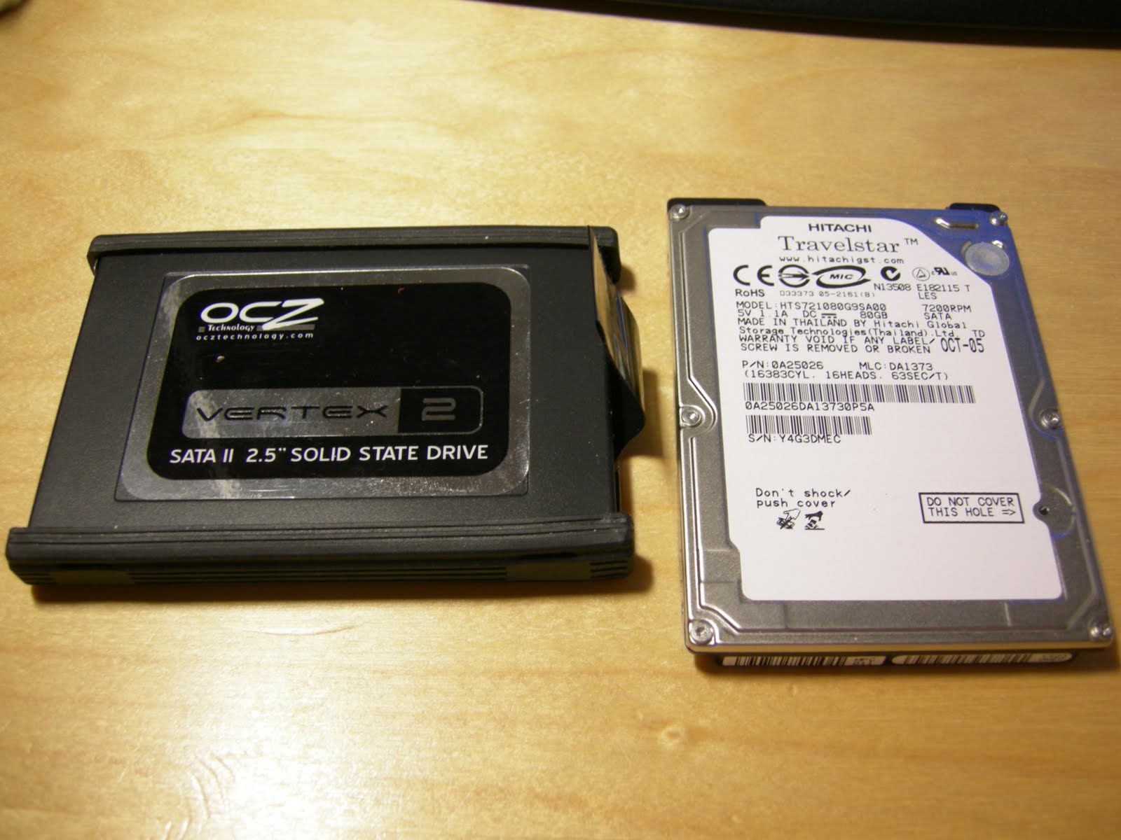 4) Replace the existing harddrive (Hitachi Travelstar 7K100 HTS721080G9SA00, 80 GB) with an SSD (OCZ Vertex 2, 120 GB)