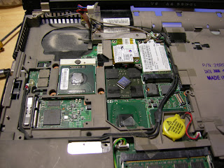 Ok, so I removed the palm rest and the keyboard and got a good look of the inside of the T60 (quite a bit of dust in there...)