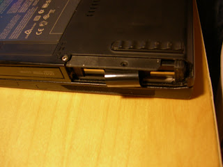 Again refer to the HMM but there's only one screw holding the hard drive in place. When the "lid" is off the laptop there is a black plastic/rubber thingy for pulling out the hard drive. As always be careful when working with these somewhat delicate items.